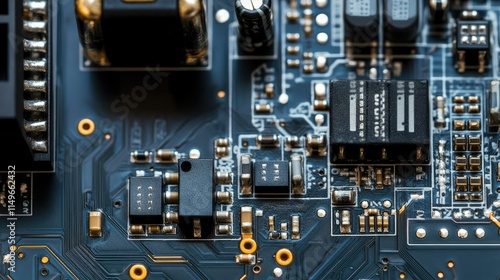 Close-Up of Complex Electronic Circuit Board with Microchips and Connectors