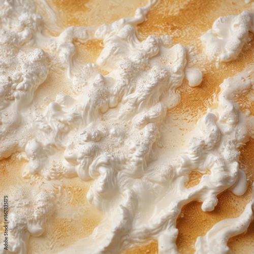 Close-up of creamy beer foam, textured background, appetizing, stein, pint