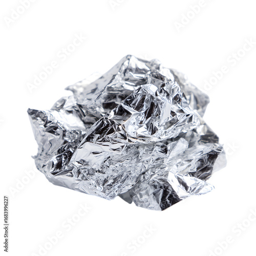 Closeup of Crumpled Metallic Foil Texture and Surface Detail isolated on transparent background