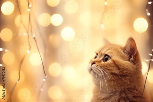 Close-up of cute cat gazing at something with beautiful bokeh background