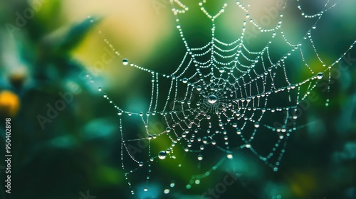 Close-up of dewdrops on a spiderweb, symbolizing the intricate connections within ecosystems