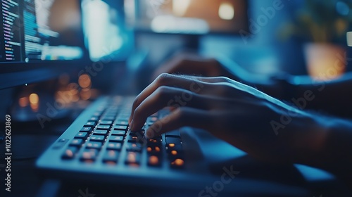 Close-up of diverse hands typing on a single shared office keyboard, various skin tones visible, soft ambient light highlighting key interactions,