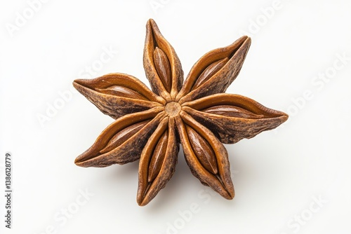 Close-up of Dried Star Anise on White Background for Culinary Use