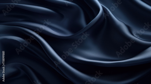 Close-up of elegant blue satin fabric, showcasing its smooth texture and luxurious sheen against a dark background.