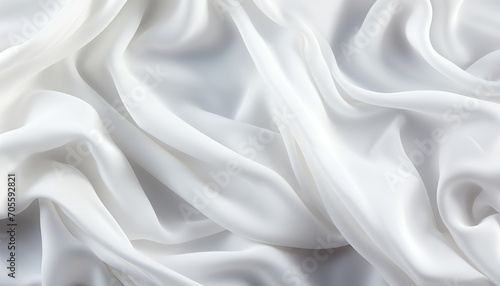 Closeup of elegant crumpled white silk fabric background texture with a luxurious design