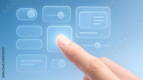 Close-Up of Finger Interacting with Floating Semi-Transparent UI – Futuristic Touch Interface