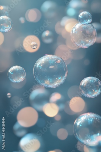 Close-Up of Floating Soap Bubbles with Soft Bokeh Background in Pastel Colors