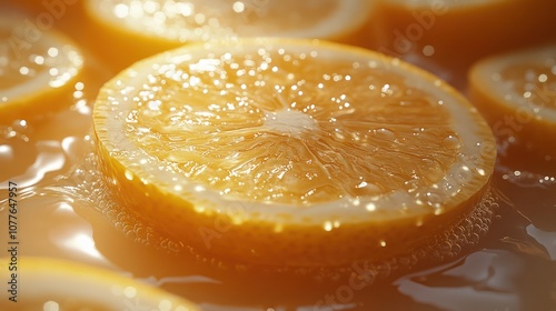 Close-up of fresh orange slices floating in water.