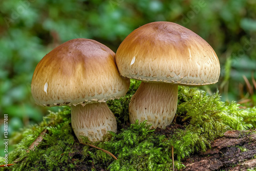 Close-Up of Fresh Organic Porcini Mushrooms on Autumn Leaves Created with Generative AI