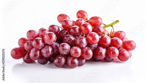 Close-up of fresh red grapes on a white background, highlighting their vibrant color and natural texture.