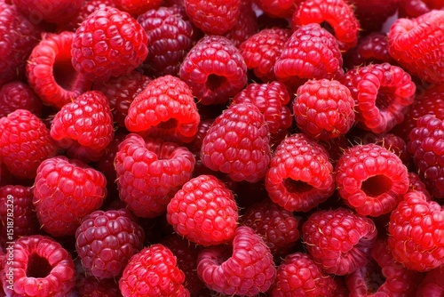 Close-up of fresh ripe red raspberries densely packed together showing detailed texture and rich color