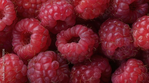 Close-up of fresh ripe red raspberries with detailed texture and vibrant color.