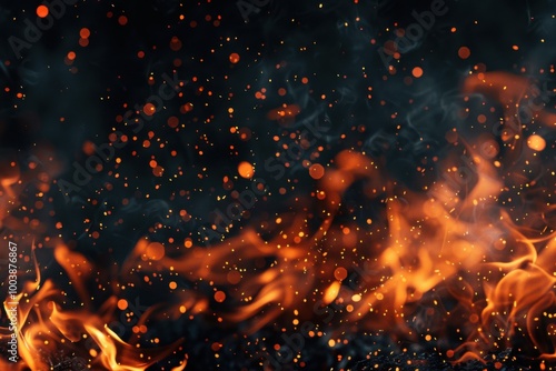 Close-Up of Glowing Embers and Flames with Fiery Sparks Against a Dark Background, Capturing Intensity and Heat
