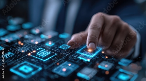 Close-up of hand interacting with digital circuit board