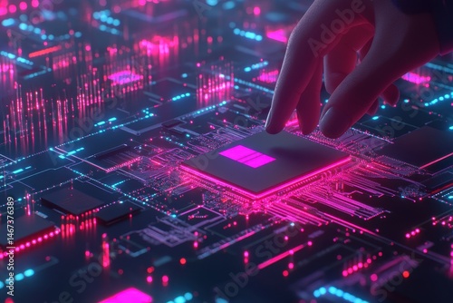 Close-Up of Hand Interacting with Futuristic Circuit Board Design