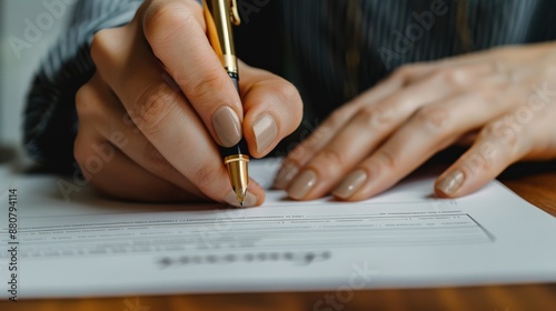 Close-up of hands signing a legal contract with a golden pen