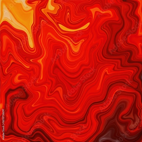Close-up of hot wax pool in red and amber tones, partially cooled edges with glossy marbling texture.
