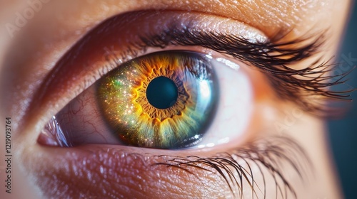 Close-up of Human Eye with Colorful Iris and Detailed Texture