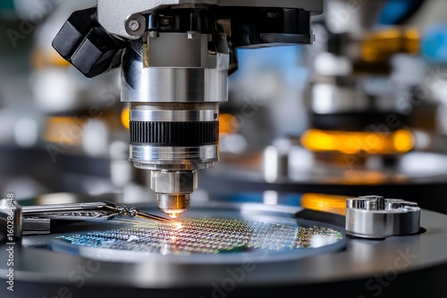 Close-up of industrial laser engraving process on circuit board with precise machinery