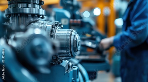 Close-up of industrial machinery with a worker in the background.