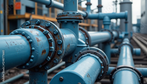 Close-up of industrial pipelines for water distribution in blogs, designs, and engineering resources
