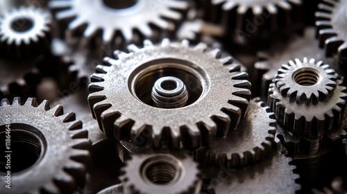 Closeup of interlocking gears, exploring the complex mechanics of industrial machinery