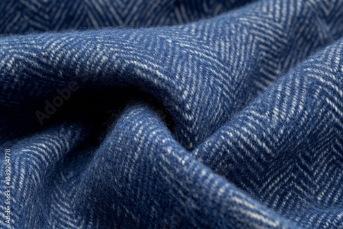 Close-up of intricate blue textured fabric with herringbone pattern showcasing fine details