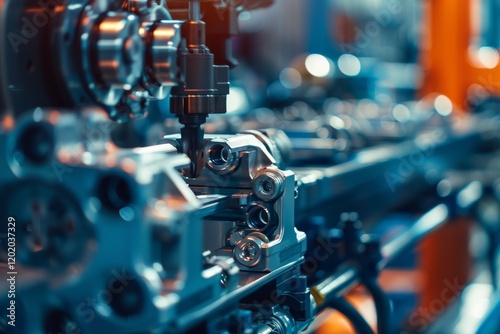 Close-up of intricate machinery components in a manufacturing setting, showcasing precision engineering.
