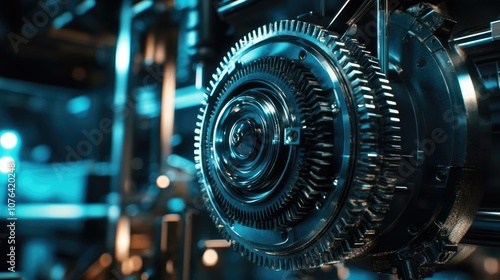 Close-Up of Large Industrial Gears and Machinery in Factory Setting