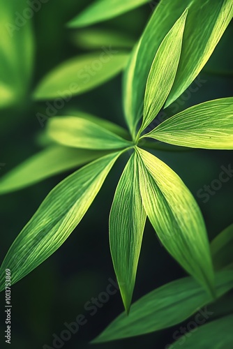 Closeup of Lush Green Leaves with Dark Background, Nature Texture