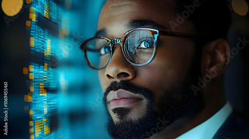 Closeup of Man Wearing Glasses Looking at Computer Screen - Photo