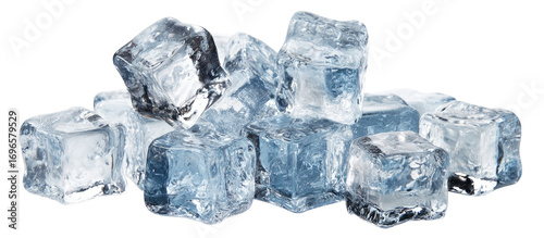 Close-up of many small, clear ice cubes