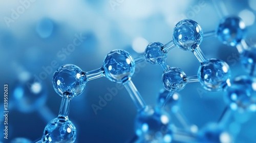 Close-up of molecular structures in a blue environment, illustrating scientific concepts.