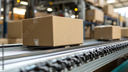 .Closeup of multiple cardboard box packages seamlessly moving along a conveyor - ai