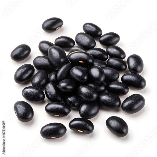 Close-up of navy beans isolated on a white background, showing their small oval shape and smooth,