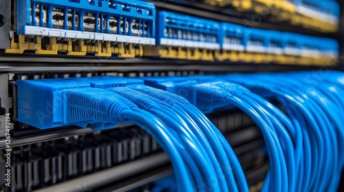 Close-Up of Network Cables Connected to Servers, Data Center Concept, Fiber Optic Technology.