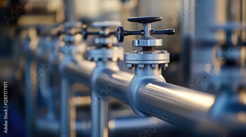 Close-up of oil refinery valves and intricate pipe systems used in processing