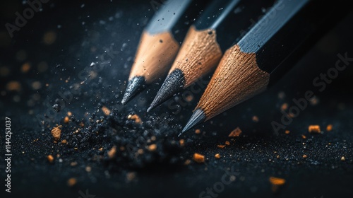 Close-up of Pencil Tips Creating Fine Dust on Dark Surface