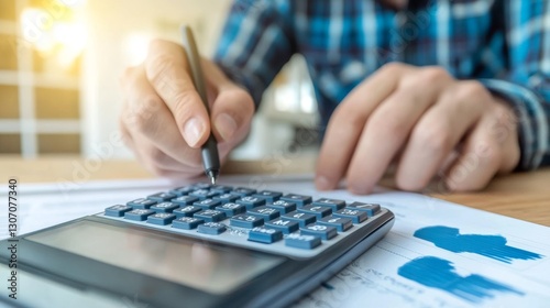 Close-Up of Person Using Calculator in a Bright Workspace Setting