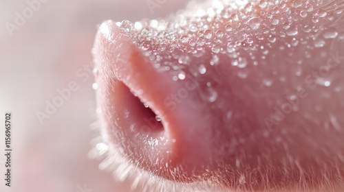 Close-Up of Pig Snout with Fresh Water Droplets on Pink Skin