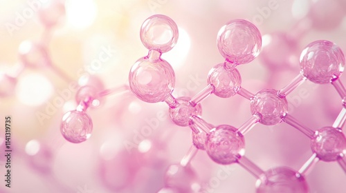 Close-up of pink molecular structures, showcasing intricate connections in a soft, dreamy background.