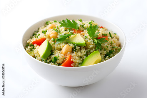 Close-Up of Quinoa Salad with Avocado and Chickpeas, isolated on white background
