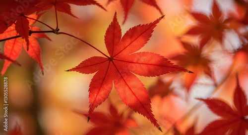 Close-up of Red Japanese Maple Leaf in Autumn Sunlight