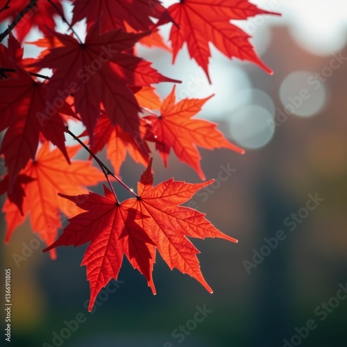 Close-up of red maple leaves against a blurry background, autumn, close-up, maple