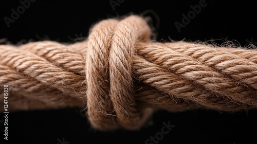 Close-up of rope knot, dark background, texture, strength