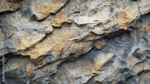 Close-up of rough, textured rock face with varying shades of gray, brown, and beige.