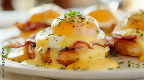 Close-Up of Savory Eggs Benedict with Hollandaise Sauce
