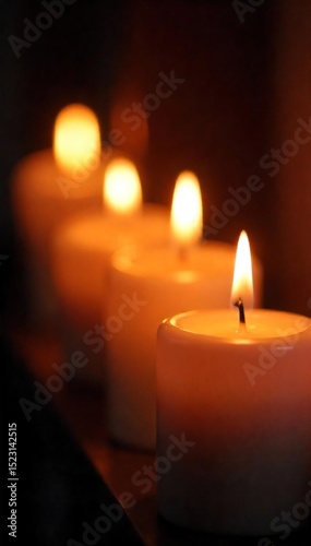 Close-up of several flickering candle flames, casting a warm, inviting glow Perfect for romantic, relaxing, or spiritual themes Soft focus highlights the dancing light , fire, elegance, stillness