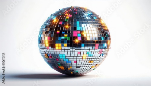 Close-Up of Shiny Disco Ball with Colorful Reflections. Vibrant Disco Ball Glowing with Colorful Lights.