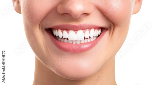 Close-up of smiling woman with healthy teeth, isolated on transparent background